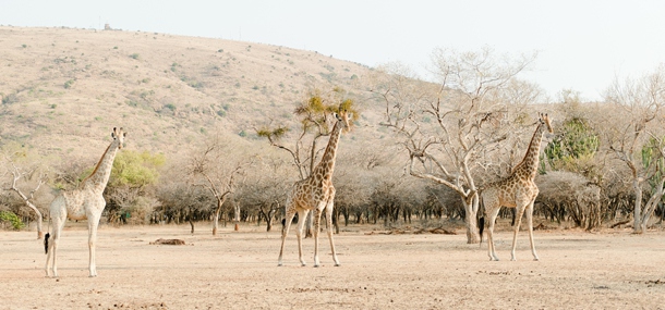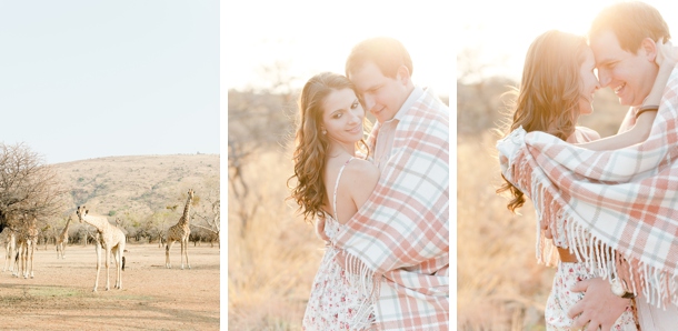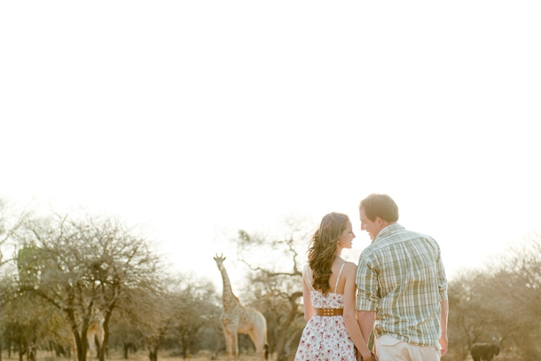 Right off the bat, I’m going to say this might be my favourite e-shoot ever. Louise Vorster‘s dreamy pics of LinĂ© & Johan are just exquisite, and the whole thing took place in the African bushveld, which is my best place in the world. With some beautiful giraffes grazing elegantly in the background, a curious kudu, and lots of love and laughter between the couple, it may be the ultimate SouthBound engagement. Thanks so much for sharing, Louise!