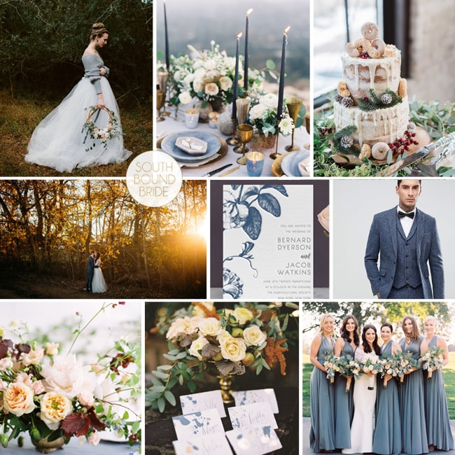 I think it’s time for me to finally admit defeat and acknowledge that autumn is here (actually, winter really, but at least we’re always a little bit behind in Durban, weather-wise!). And while I’m always super sad to let summer go, I do love the coziness of the colder months, cuddling up with my spaniel under a warm blanket, hot chocolate and cookies, hot baths, etc. And of course, the rich autumn colour palettes! As you know, I love a fresh take on a classic palette, so for today’s inspiration board, I’ve turned to one of this year’s quiet heroes: dusty blue. Millennial Pink and Ultra Violet might be getting all the press, but the more soft and subtle blue is everywhere, making a beautiful cool base for so many other lovely shades. And while it’s more closely associated with the other seasons, it works just as well for fall, especially when paired with other muted shades like a matte forest green and a very soft mustard, as I have here, for a fine art, botanical feel that’s a gorgeously fresh take on the autumn look. What do you think?