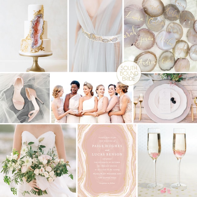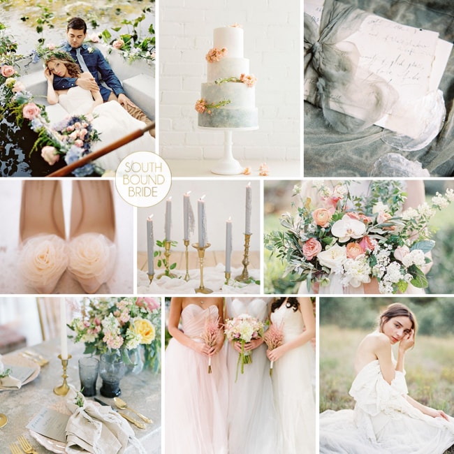 Row 3: Centrepiece (Hannah Duffy Photography/Louise Beukes of BLOVED Blog/Bo Boutique) | Escort Cards with Flowers (Joey Kennedy Photography/Lora Kelley/Mallory Joyce) | Dusty Blue Bridesmaid Dresses (Erin Stubblefield Weddings and Portraiture/Magnolias)