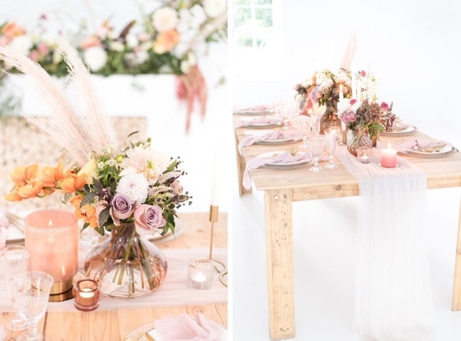 Today’s feature reminds me why, when I started SBB, I was so crazy for making inspiration boards – there’s something about playing with colour and creating new and fresh and surprising or interesting combos that just makes my heart sing. And I especially love that when it comes to autumn weddings, which can be very clichéd in terms of palette, deferring to the standard golds and burnt reds and oranges and browns of the falling leaves. But in SA we have a gentler autumn mostly, so it seems only appropriate that maybe our autumn weddings are a little less harsh. Today’s styled shoot by Cara Faye Weddings and her trend-setting team of wedding pros really hits a perfect balance – those traditional autumn tones are in there, but balanced against some super pretty purple and pink tones, along with soft flowers and dreamy textures. It’s gorgeous, and such a perfect way to make an autumn wedding feel both seasonal AND romantic!