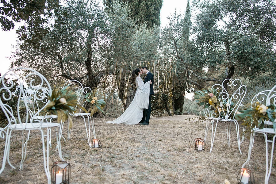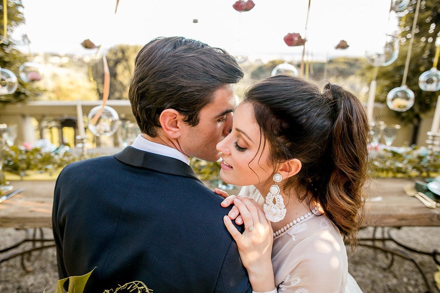 Every time I see pictures of Italy (anytime, but especially right now since I have a flight booked in May) all I can think is: TAKE ME THERE. Like, right now. Those of you who have been reading SBB for a while (and anyone who’s ever been around me during the soccer world cup LOL) will know that I’m proudly half Italian, and so the minute this dreamy romantic shoot at a villa looking over the city of Florence crossed my desk I was in LOVE. Can you imagine? The Villa Le Fontanelle includes the villa, a fortress and a beautiful garden in the grounds, and it made an incredible backdrop for this shoot. The talented team, led by planners The Tuscan Wedding, wanted to create a rustic, warm mood using neutral colors such as yellows, greens, browns, and reds. And it is warm, it’s inviting, it’s summery, and it’s oh-so-elegant. So let’s take ourselves there by diving into Storyett‘s dreamy pictures!