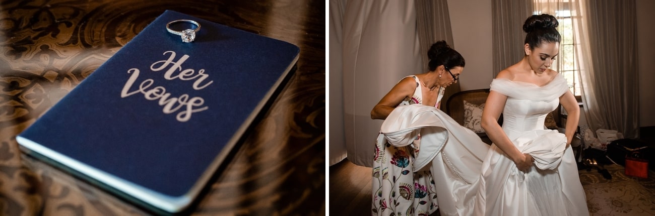 Before the ceremony started, we had a moment of silence to call our beloved departed family and friends to mind. We played a recording of my late grandfather (who was an incredible operatic singer) singing the Panis Angelicus and it was a really peaceful and beautiful moment. We also had a number of guests who weren’t able to make it to the wedding because of illness so we set up a YouTube live stream for everyone who wanted to witness the ceremony but couldn’t be there. Pretty much every guest who wasn’t there in person watched via the live stream and it meant so much to them to still be included even though they couldn’t be there. The vows were also very moving – and then our couple shoot funny enough. Our photographers were incredible, and made us feel so relaxed. So we really had fun, got to relax and enjoy ourselves alone for a bit in the midst of the craziness. Oh! And right at the end of the night – our closest friends and bridesmaids stayed with us after the reception was over – we grabbed some champagne and kicked off our shoes and hung out with them for a few hours just reminiscing and enjoying the end of such an amazing day. My brother made a little toast then and it was really special. And then Greg carried me over the threshold into our room while they all cheered and clapped – it was such a fun end to an awesome day.