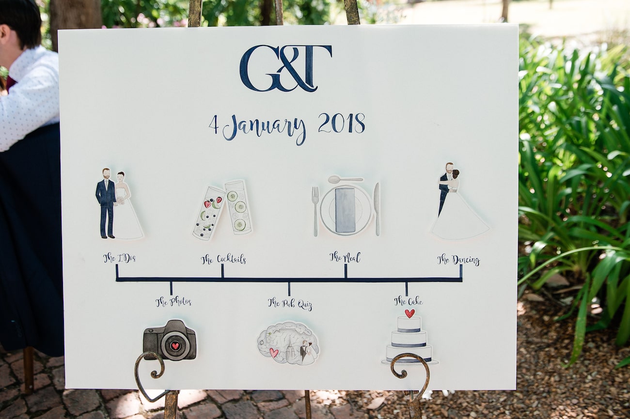 I think one of the reasons that the travel wedding ‘theme’ has remained such a favourite with my readers year in and year out is that it’s one of the few that isn’t just about being a trend but is really about telling a couple’s story. For Greg and Tina, that story is bound inextricably with travel. Almost as long as they’ve been a couple, they’ve been travelling across oceans to be together, and exploring the world as they grown in love. It’s so romantic! And so when it came to finding a thread to run through their decor and design, it had to be travel. I absolutely love the ideas Tina executed to pull this off – the cake especially, but also the seating plan, the hand painted table names, the little aeroplanes here and there on the stationery. There were other clever ideas that told the couple’s story too though – a G&T bar to honour their monogram, a proudly South African menu to honour the place they met and fell in love, even a cocktail hour pub quiz for their guests (SO fun!). And all of this against the stunning winelands backdrop of Nooitgedacht Estate, which perfectly complemented the bride’s elegant vision. There are so many wonderful stories woven through this day, it’s definitely worth taking the time to read what Tina had to say about all of it, and sharing in these special moments thanks to the images by Art Photo!