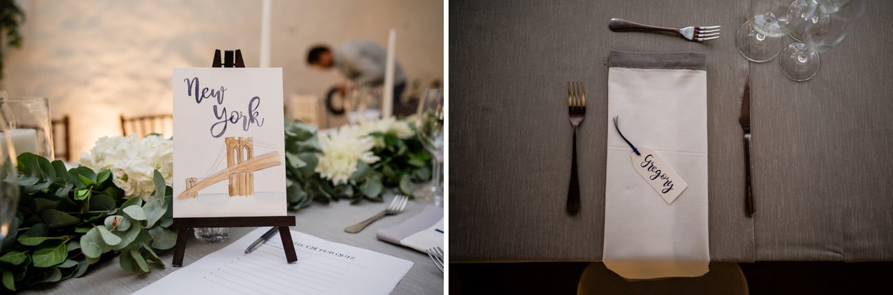 The other thing that was such fun (and was the first thing I KNEW about our wedding before I made any other plans) was that we had a Pub Quiz to keep guests entertained while we were doing our couple shoot, and to break the ice between them. I have always hated the hour and a half at weddings where the couple is off doing a shoot and you’re just sort of milling around, not really knowing the other guests. So, I completely upended tradition and planned out our seating chart so people were not sitting only with other guests that they knew. We created our tables based on guests who were of similar ages or interests or general disposition – and then the table worked as a team for the Pub Quiz. Greg and I love games and trivia so we wanted to share that with our friends. Questions were about us and our relationship, trivia about cities we had visited together, questions where the answer started with either a G or a T, and famous couples through the ages. We told the guests that the quiz was called ‘The Hunger Games’ and that the team that won would be first in line for the buffet! Our guests absolutely LOVED it. Everyone got quite competitive! And people got to know each other which meant that conversation during dinner was lively and everyone got on the dance floor at the end of the night. There was just such a sense of community and joy, and that was exactly what we wanted.