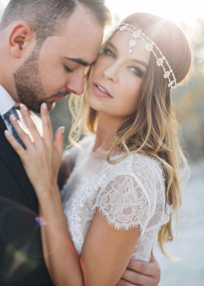 Finally, meet gorgeous Barcelona from indie bridal brand, Wear Your Love. I’ve chosen to pair it with the desert bohemian wedding style which is super on-trend. The gorgeous lace is ideal for a free-spirited bride, whether she’s having a wedding that’s relaxed and outdoors, or has chosen the boho glam look. I love this style paired with a dried floral invitation suite, boho florals like proteas, pampas grass, and succulents, lace bridesmaid dresses, and a delicate boho bridal hairpiece.