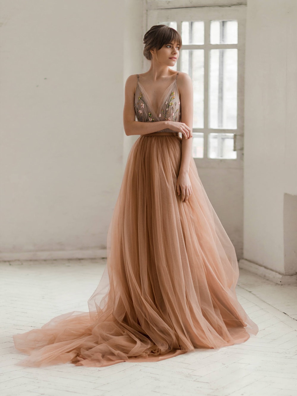 Bohemian Floral Tulle Wedding Dress by Dream and Dress