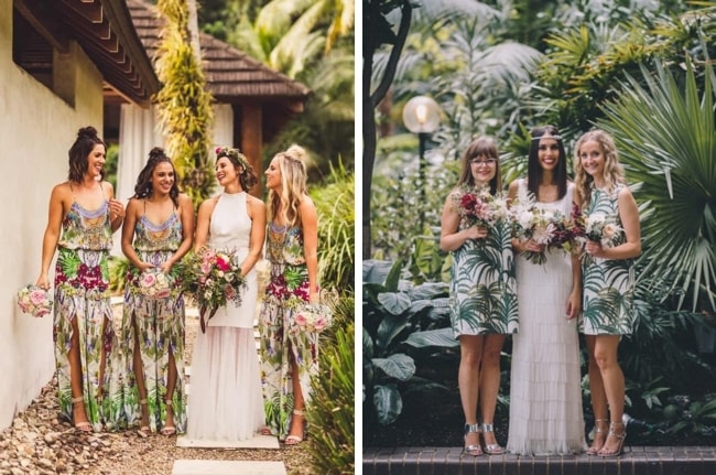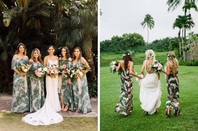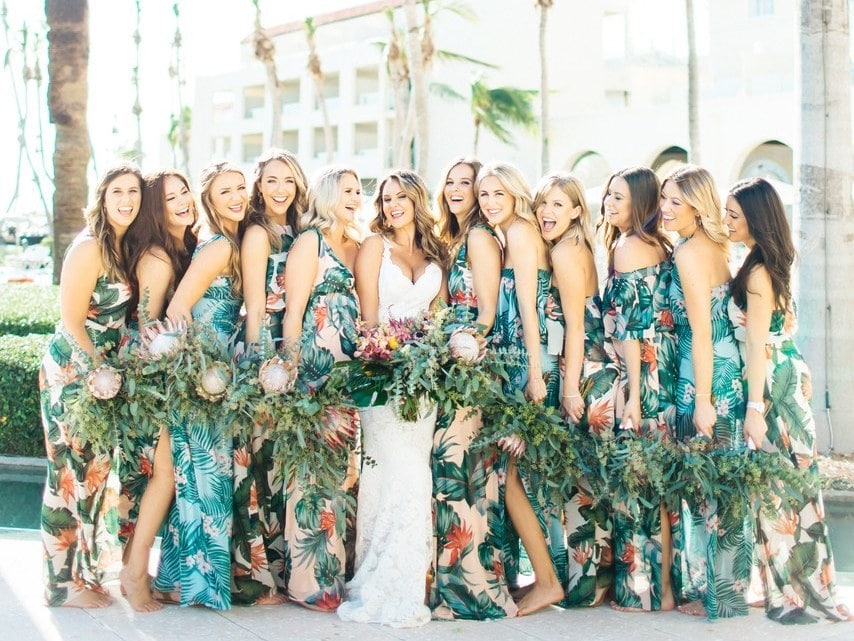 Let’s get tropical! Yes, I know, it’s winter outside in SA (belieeeeeeve me I know – I spent last weekend huddled round a fire in Dullstroom), but that also makes it the perfect time to start thinking ahead for the next summer season. Tropical prints are SO hot right now, and with brands like Show Me Your Mumu really making this look popular in the last year, I thought it was time to round up some of my favourite tropical bridesmaid lineups. If you’re planning a beach or destination wedding, or just love this summery look, then prepare to be inspired!