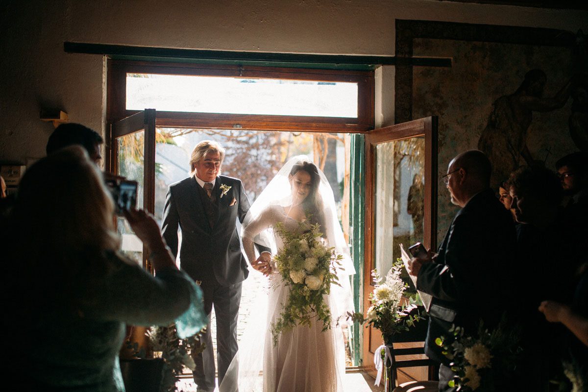 Janita Toerien made my dress. The day we went shopping for the fabric I saw a very sparkly beaded roll of fabric and absolutely LOVED it. So my gown was fully beaded with an off-white tulle skirt. My whole life my dad has been saying that there is something magical about me (like all dads see their daughters) and in my wedding dress I really did feel like magic. It was very me.