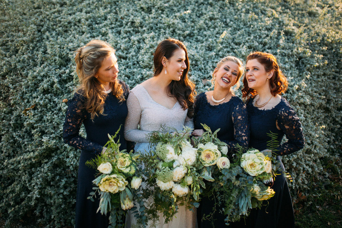 I had three bridesmaids. They wore beautiful navy blue dresses.