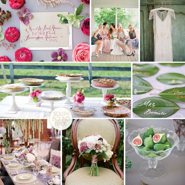 Row 3: Bouquet (Adrienne Gunde/Valley Flora/Amy Kaneko Events) | Bright bridesmaid dresses (Cassie Loree Photography/Petals Couture Floral & Event Design/Bella Bridesmaids) | Cake with kumquats (Michael Radford Photography/Tinge/Pippa Cakery)