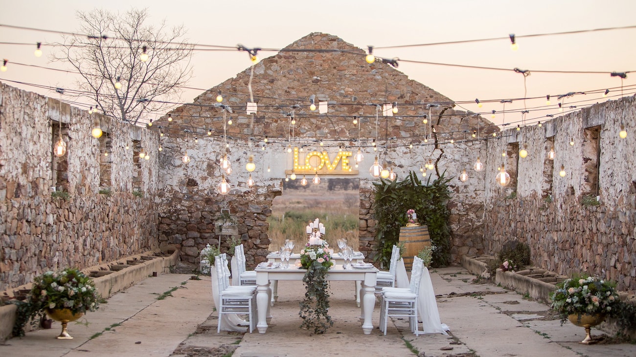 Just look at that picture! Isn’t it GORGEOUS? I don’t know about you, but I have this thing about ruined and abandoned buildings (which is probably one of the reasons I was so excited to go to Cuba a few weeks ago), and the idea of a wedding in a place that’s got that lost and found, slightly haunted vibe about it is just delicious. Add in dozens of lights, beautiful blooms and elegant table decor and you have this incredible contrast between rustic ruins and classic black tie that’s nothing less than… magical. That’s why I am so excited to share this beautiful styled shoot by Lilly and Lace Photography and NadiaM (and their talented vendor team) with you this afternoon. I just want to step into the world they’ve created, and lose myself in this pretty fantasy. Sigh!