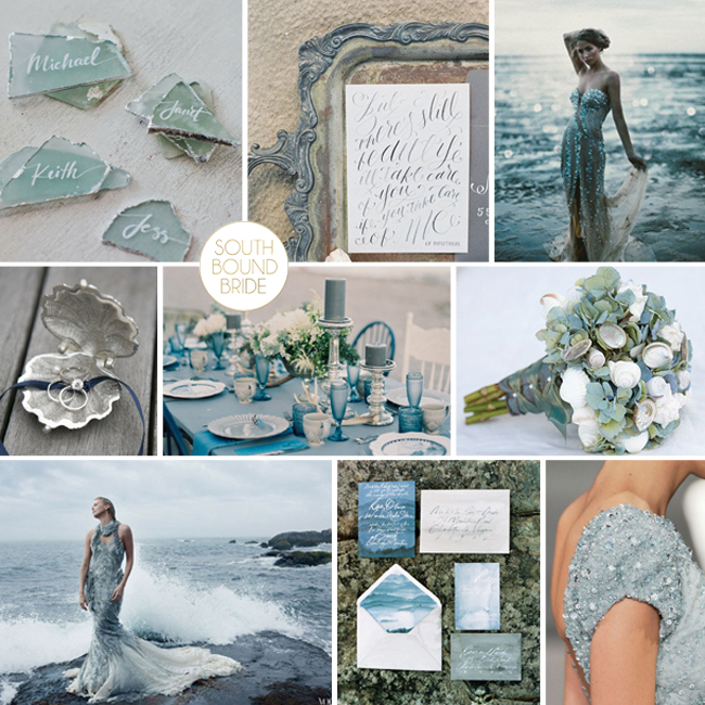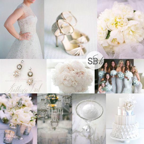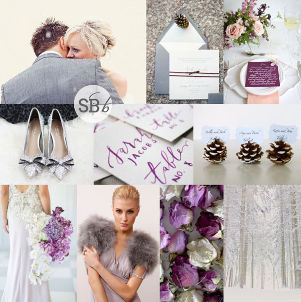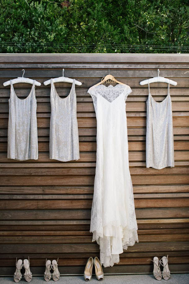 Top (l-r): Bride with updo (Heather Hawkins/Makeup Santa Fe) | Invitations (Kaitlin Maree Photography/Wedding Playbook/Love Notes Australia) | Silver bridesmaids (Bryce Covey Photography)