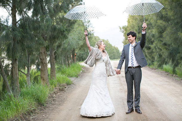 Looking out at the sunshine in Durbs today, it’s hard to imagine a wedding ever gets rained out in this country but as you all know, that is not even close to being the case. In fact, of the five weddings I’ve been to in South Africa in the last two years, three had some kind of rain to deal with. And okes, one of them was in Phalaborwa. Chances? Anyway, the point is this: we hope for sunny skies (and we usually get them) but rain is something that you need to plan for. So I asked fab SBB sponsor Lizl Pieterse of Flamboijant to share her top tips as a planner for avoiding those rainy day blues, and she’s here with some really fantastic advice. Not just that, but I’ve rounded up some beautiful pictures from our photographer friends, which just goes to prove – you can still get the most gorgeous images of your day, come rain or come shine! Over to you, Lizl… ;)