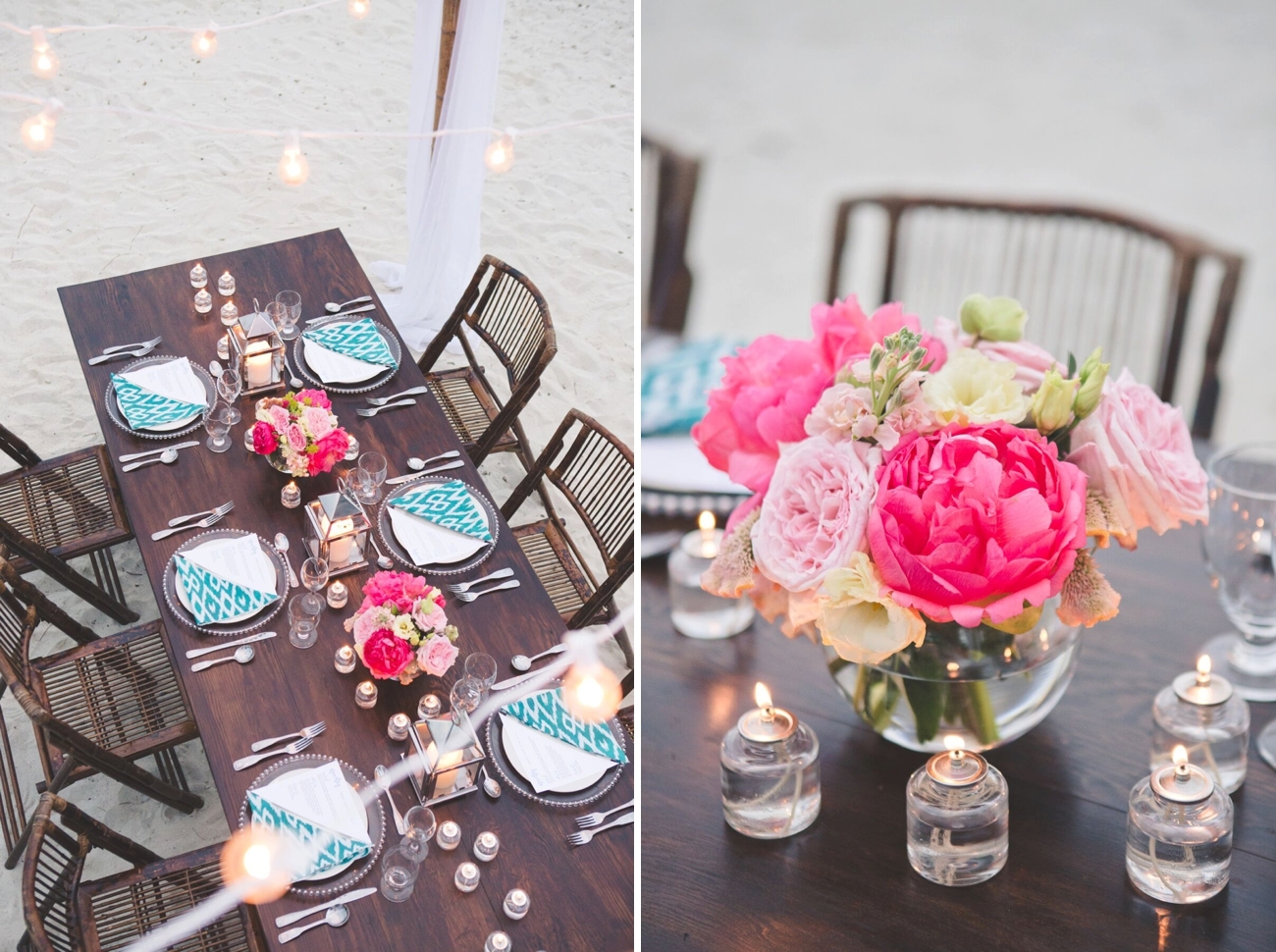 Another massive stress reliever is knowing you have a certified planner onsite, as you do at Abaco Beach Resort. And when it comes to those decor details we all love so much (but which are kind of a nightmare to plan from afar), we’ve got you covered. The AS editors have curated the most gorgeous design options for our Aisle Society Weddings, like a conch shell ring bearer holder to a custom Save the Date, to custom linens. Picture farmhouse tables under bistro lights, bamboo chairs, and small silver hurricane lamps. SO pretty.