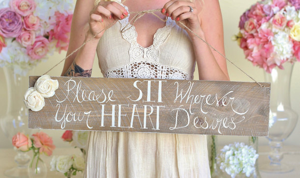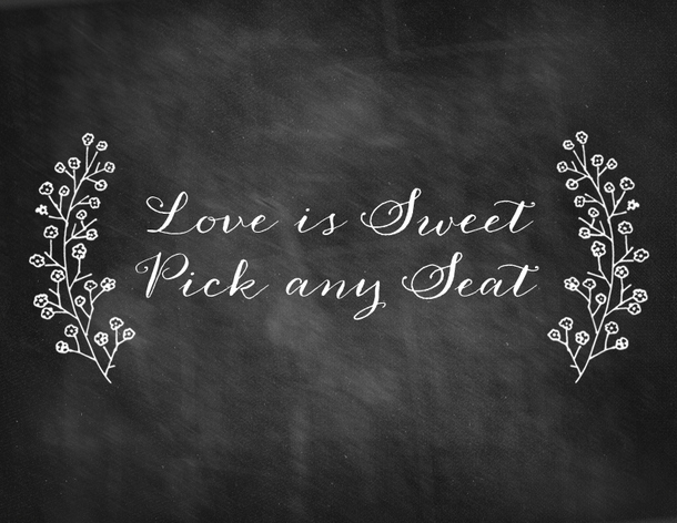 Or how about: “Love is sweet… pick any seat!” That’s what we’ve chosen for our FREE chalkboard printable, which you can download right here. Just print it yourself or via an on-demand print service like PSPrint, pop it in a frame and you’re set!