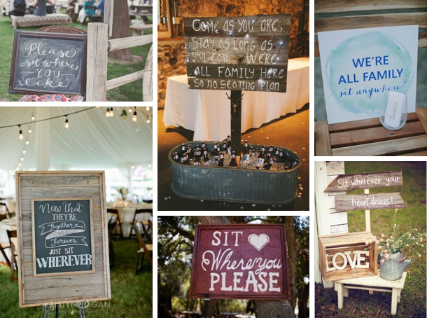 • It can split up groups or even couples. Particularly those who arrive a little late, and will have to slide into the odd seats at remaining tables. Here’s the thing though (and why you can’t really please everybody) – one of the key advantages to open seating is that the majority of guests can choose who they sit with, so they won’t be unhappy with the choice you make for them (e.g. when your single friend is sitting with a bunch of people she doesn’t know at the ‘single table’ instead of chatting to the friends she travelled cross-country to catch up with).