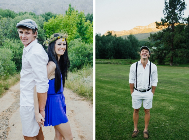 One of the biggest style errors couples make is to go too matchy with their outfits – after all, you want to make sure you look good together, right? But the key is co-ordination rather than straight out matchiness (and definitely don’t wear the same outfits). You’ll definitely want to wear outfits that suit the same general mood and level of formality (you in a ballgown, him in shorts is an emphatic no). The colours, textures and patterns should work well together, but not to the extent of having him wear a bow tie that precisely matches the colour of your dress, for example. All the couples in this post co-ordinate well, but their looks are different enough to be interesting to the eye, and that’s what you’re going for.