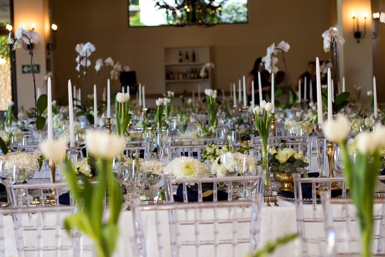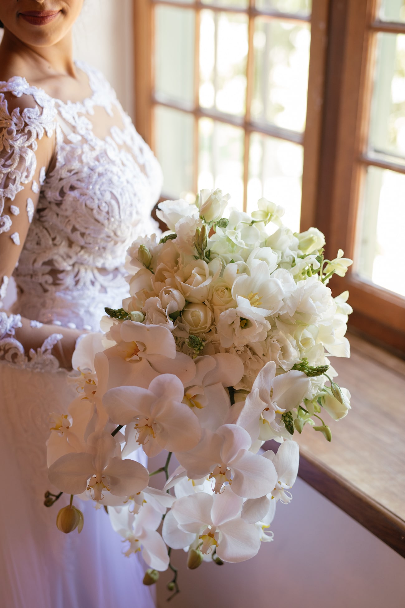 I wanted all white. I wanted orchids and tulips to stand out amongst smaller floral arrangements such as roses and snapdragons.