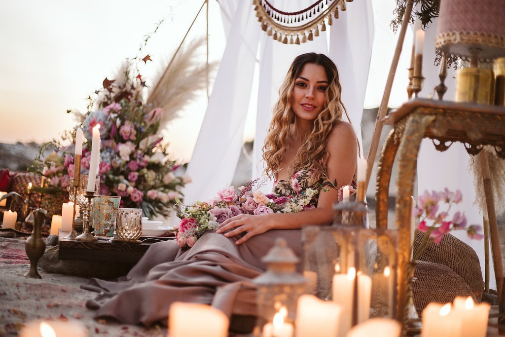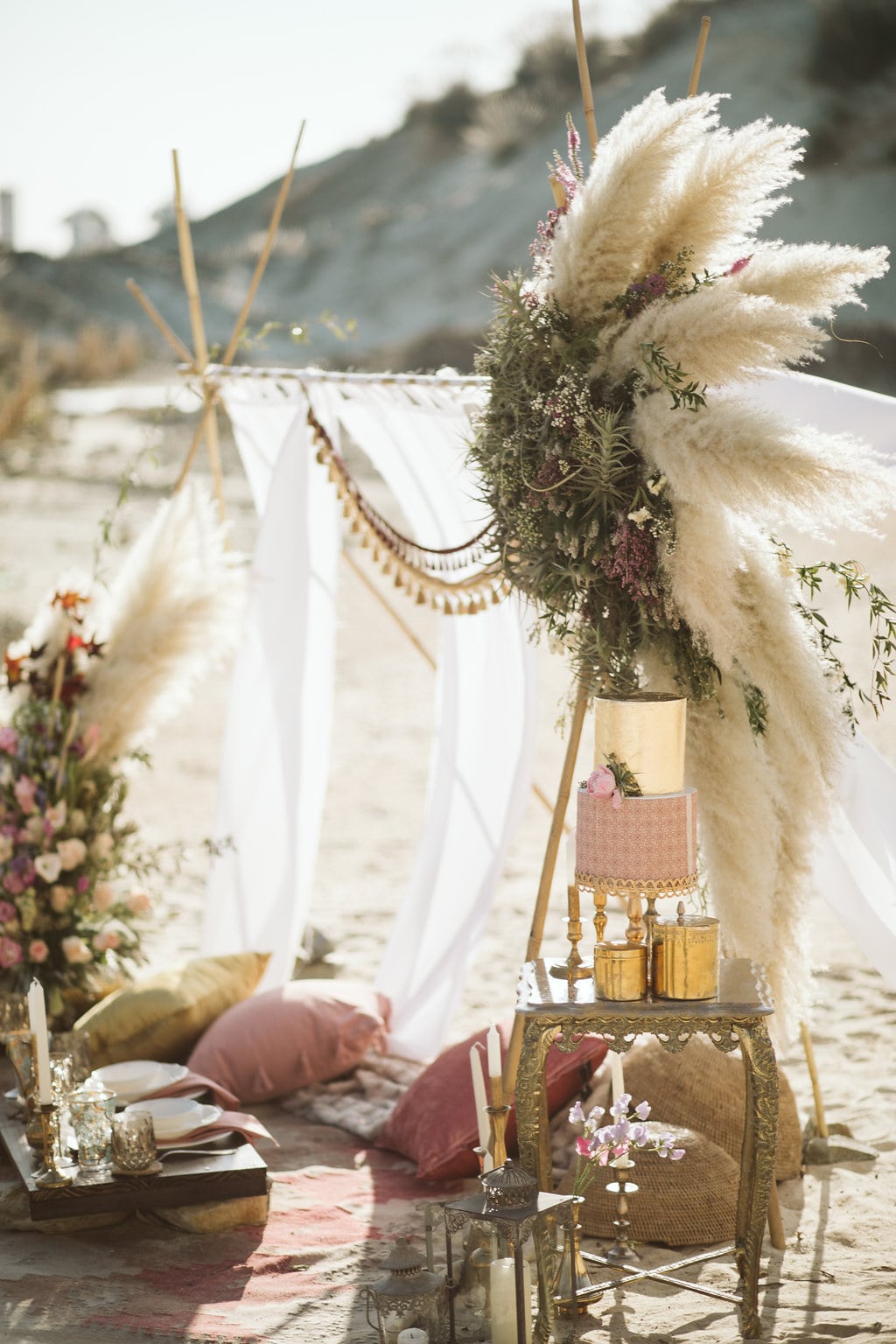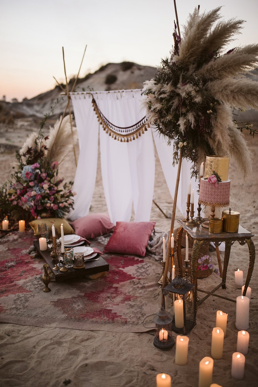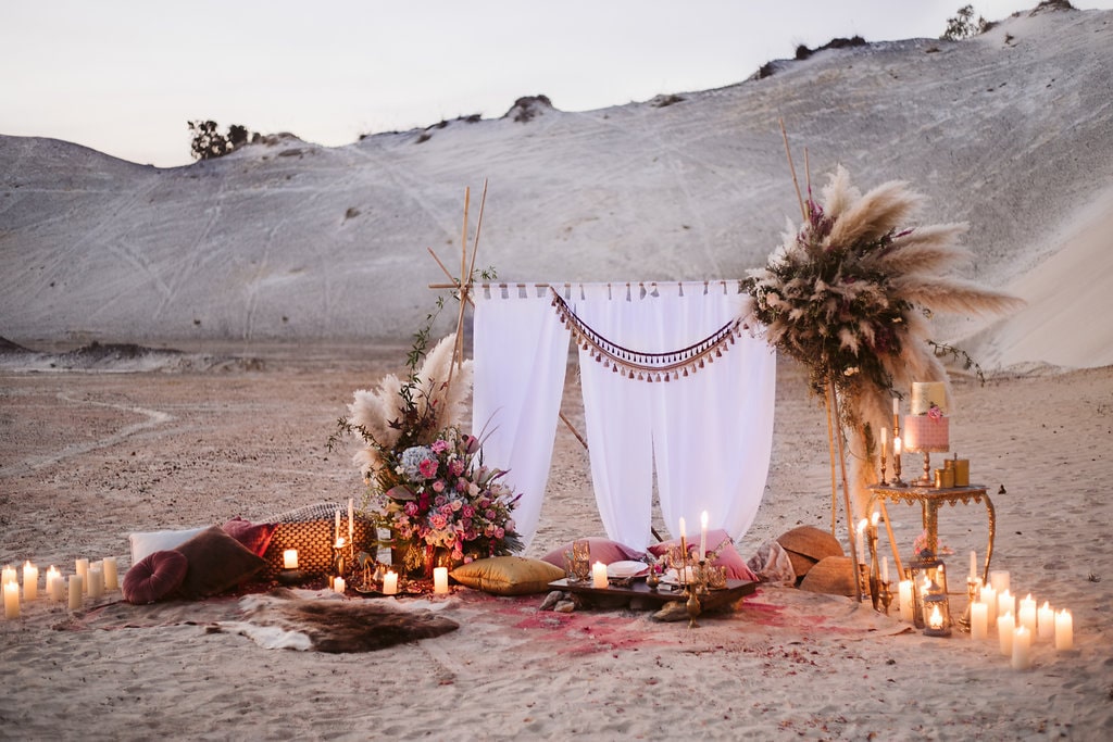 Happy 2019, lovely ones! And a huge big special welcome to all of you who are just engaged and joining us on SBB for the first time! We’re kicking off the year with some gorgeous modern boho inspiration with a desert vibe, brought to life by a talented local team. (Start as you mean to go on, I say!) I especially love that this one is an elopement, because styled elopements have become one of my absolute faves recently – I just adore the idea of escaping with your ride or die to the dunes and having a dreamy picnic while the sun goes down, perfectly captured by a photographer like the lovely Jessica Notelo! It also shows you don’t have to go to Morocco or the Mojave to capture this very much on-trend desert style. And OMG you guys the details! Cake, dress, flowers, oh my! Let’s get inspired, shall we?