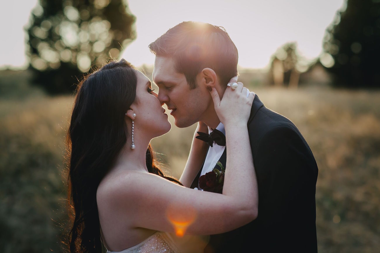 Just when you think you’ve seen boho weddings get as amazing as they’re ever going to get, this one comes in and is like: “Hold my beer.” Every picture from Carmen Roberts is so shut-the-front-door beautiful, you can’t help but stop and stare – it’s almost hard to believe it’s real life (that is, if it weren’t for the smitten looks on bride and groom Lisa and Russel’s faces – can’t fake that!). So how do I describe it? Well, boho sure. Glamorous (especially with the bridesmaids in their red-lip-slinky-dress-faux-fur getup which pretty much wins the mismatched style prize forever – and wait till you see Lisa’s gown!). Natural and Rustic. A little Game of Thrones, as talented event designer (and bridesmaid!) Joelene of Oh Happy Day pointed out. It’s a winter wedding in the forest, and it’s both on trend (pampas arch!) and beyond trend, if that makes any sense. It probably doesn’t. I think it pretty much defies definition, so I’ll stop talking and you start looking. Because however else you want to define it, it’s GORGEOUS.