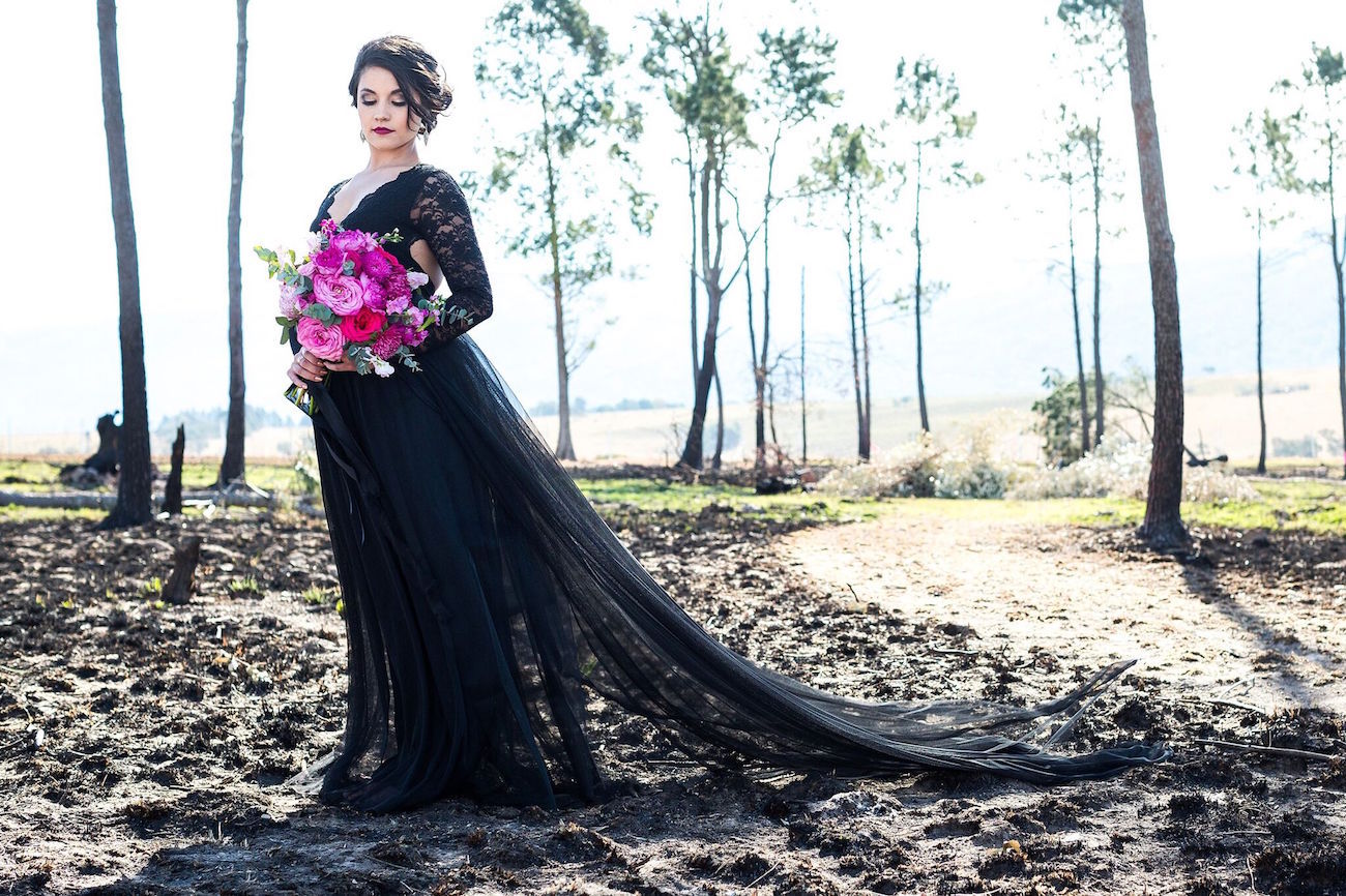 Happy Halloween, folks! Every year round this time, I see a ton of Halloween inspiration, and it always makes me smile, because let’s be honest, the couples who are going to have a Halloween-themed wedding are few and far between (even if it would be fun, right?). But that doesn’t mean that you can’t create something elegantly eerie – something just a little bit creepy, kooky, mysterious, spooky (just not altogether ookie, Addams family style!). And that’s what today’s shoot is – just a little bit dark, but super pretty as well. In fact, with soft blooms mixed with just the right amount of contrasting black, it’s the perfect inspiration – no matter what time of year you’re getting married. Carla of Mooi Photography and her team (including SBB florist faves Bright and Beautiful!) created this sweetly spooky shoot, and I’m super excited to share it with you this Hallow’s Eve!